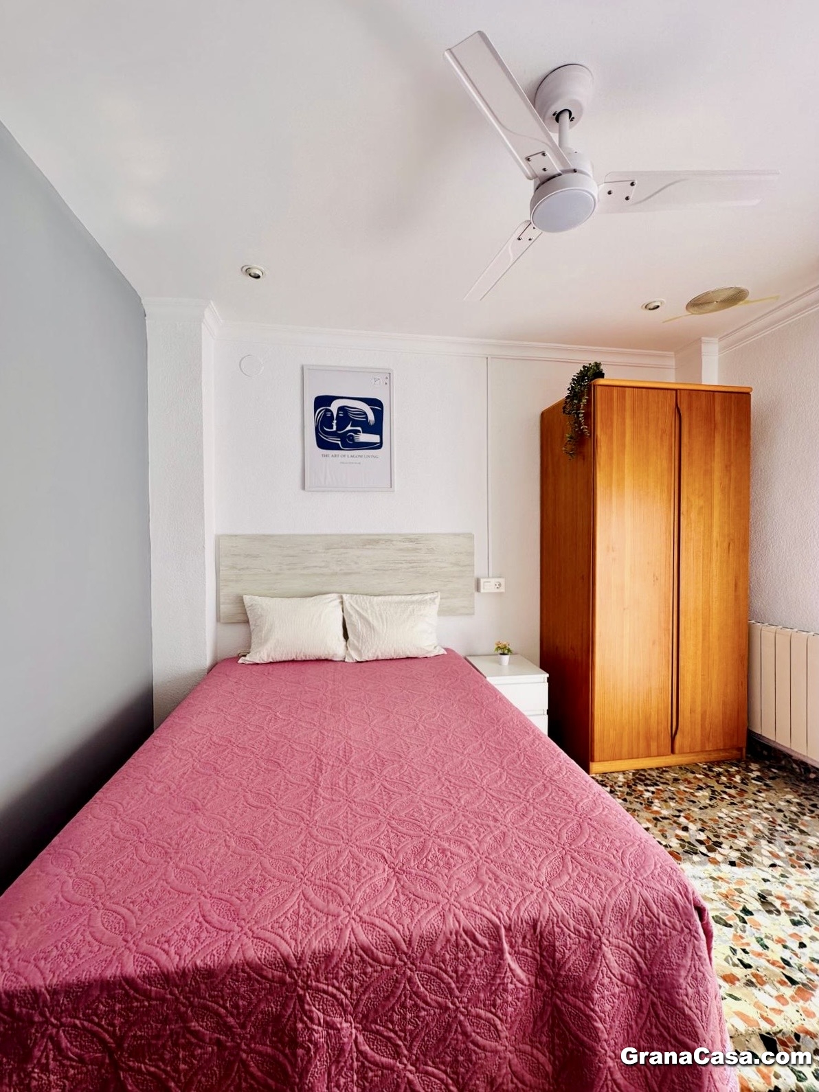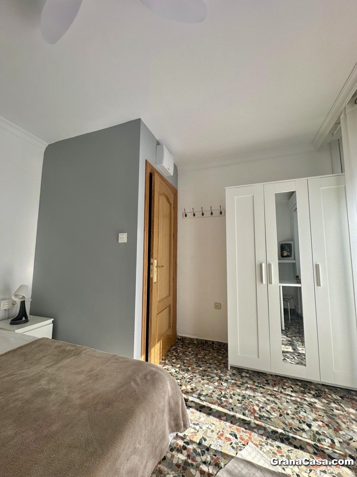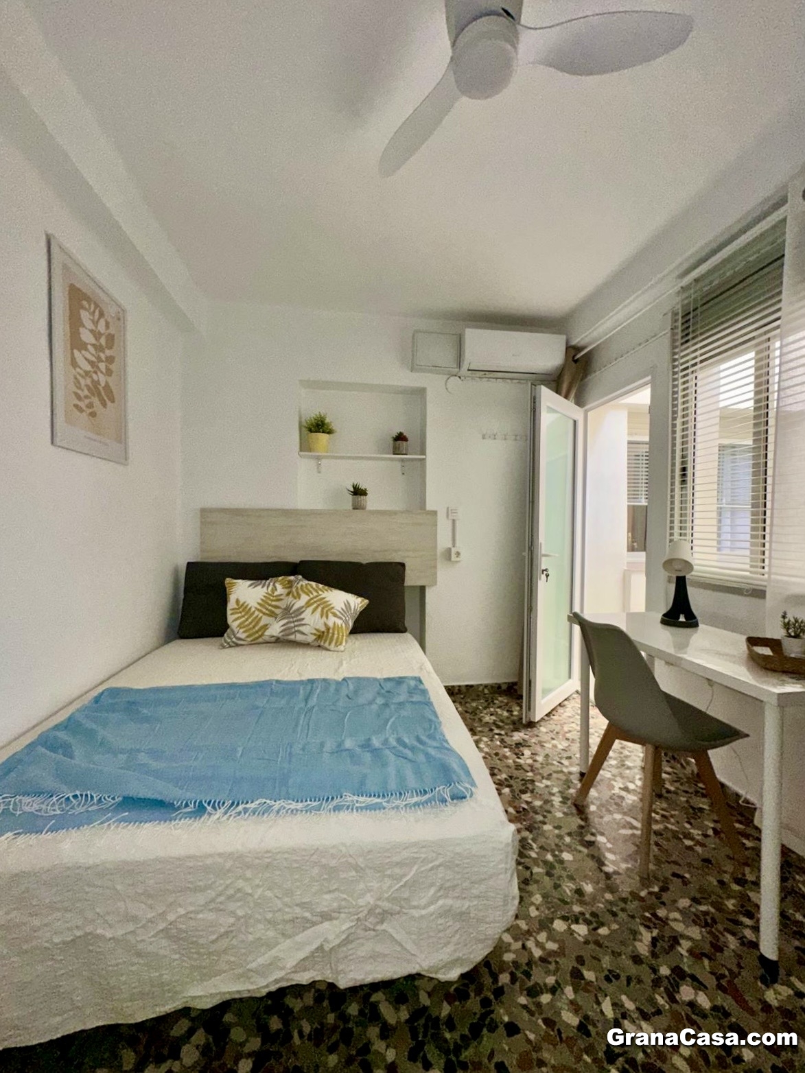 -Dormitorio 1 (exterior, con balcón): Cama de 135 cm, armario y escritorio.