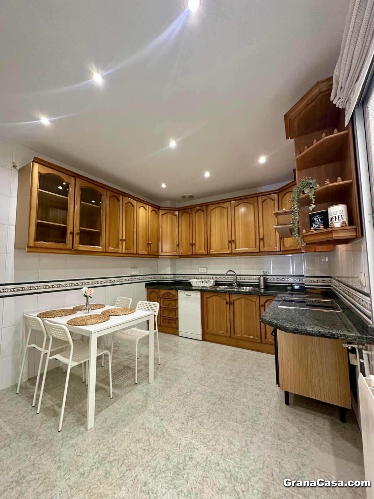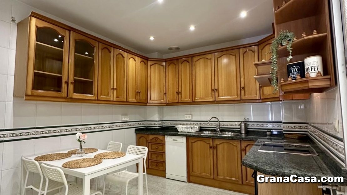 -Cocina: Dos frigoríficos, vitrocerámica de cuatro fuegos, horno, microondas, lavavajillas, lavadora (aunque no aparezca en las fotos) y mesa alta con sillas.