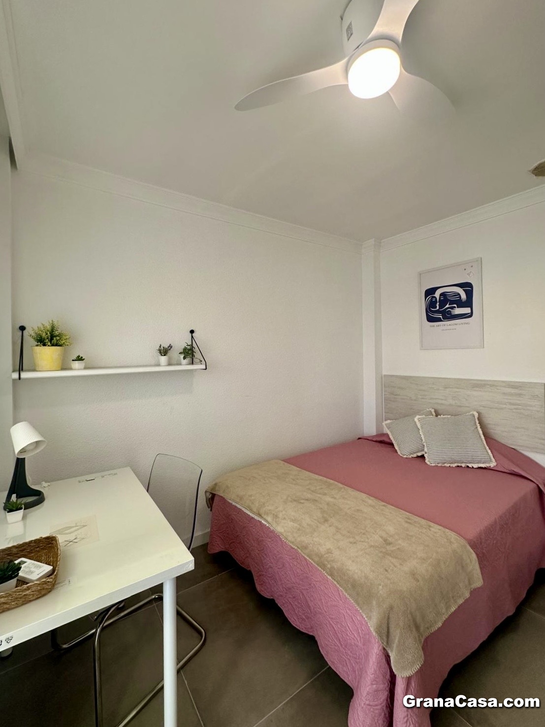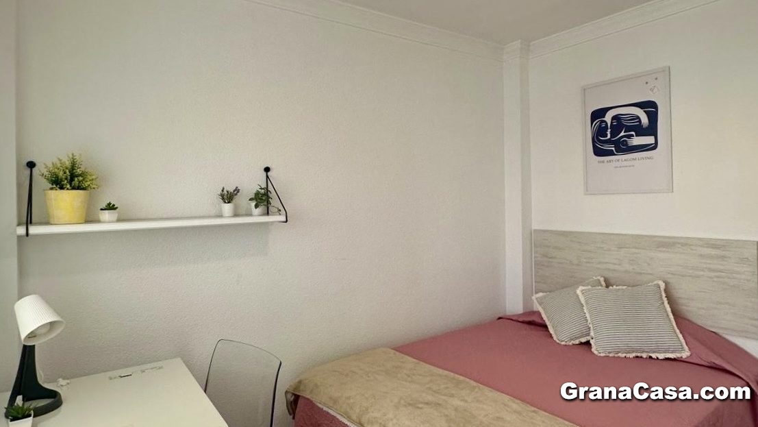 -Dormitorio 4 (interior, con baño 2 y patio, 450 euros): Cama de 135 cm, armario empotrado y escritorio.
