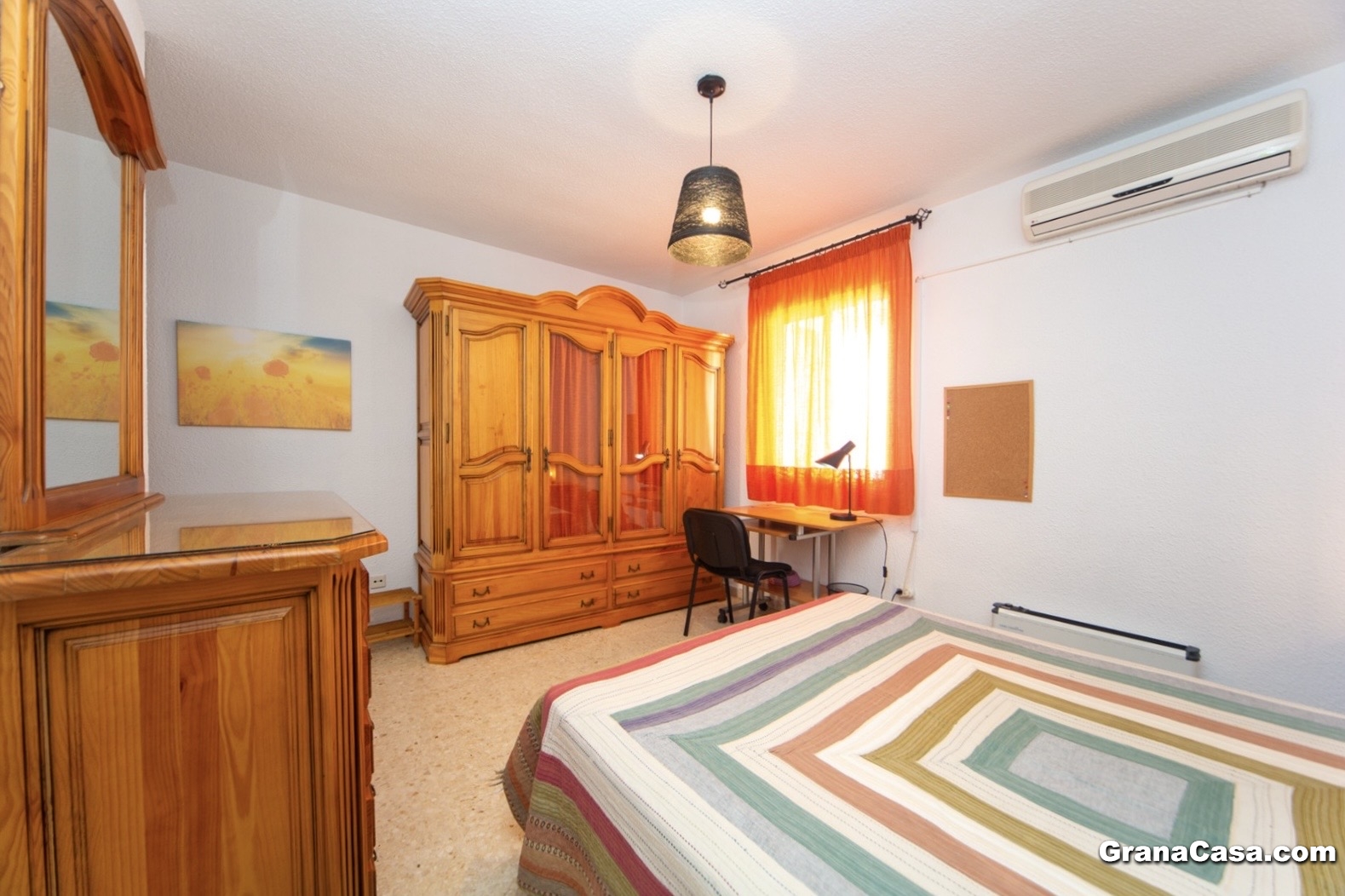 -Dormitorio 1 (exterior, con baño, 325 euros): Cama de 150cm, armario y escritorio.
