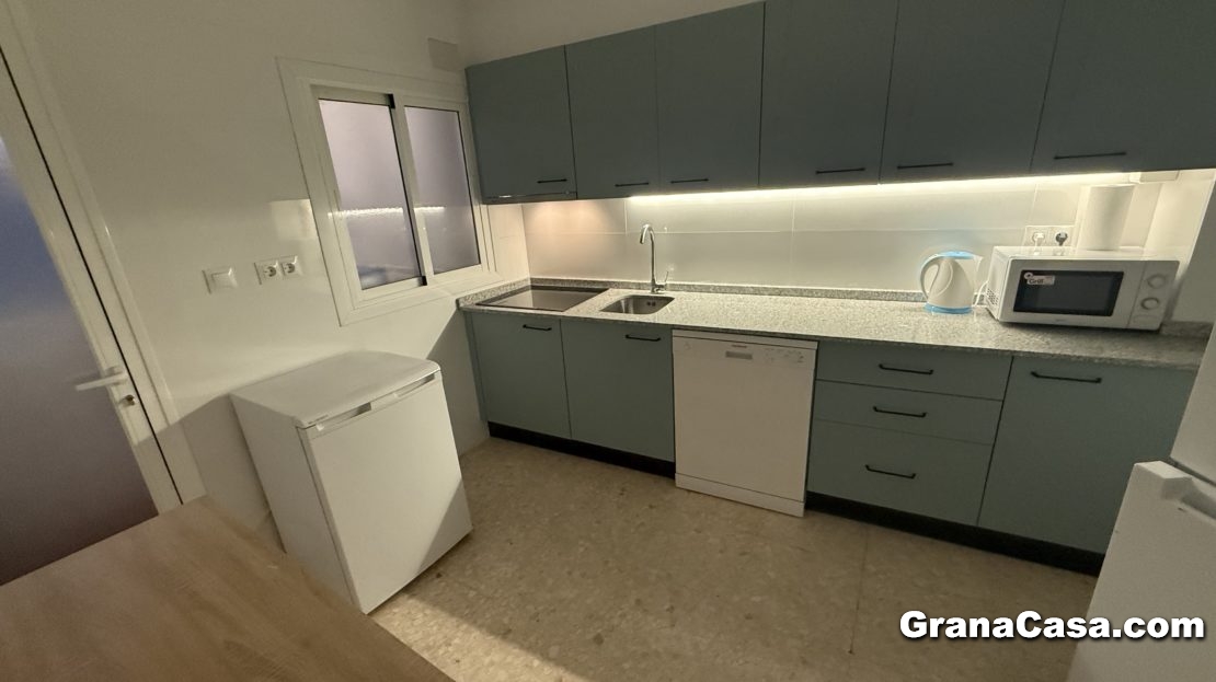 El piso se encuentra en zona universitaria y cerca del centro de Granada. Es una segunda planta con ascensor, y todo el mobiliario es nuevo, listo para estrenar. También dispone de terraza y balcón.